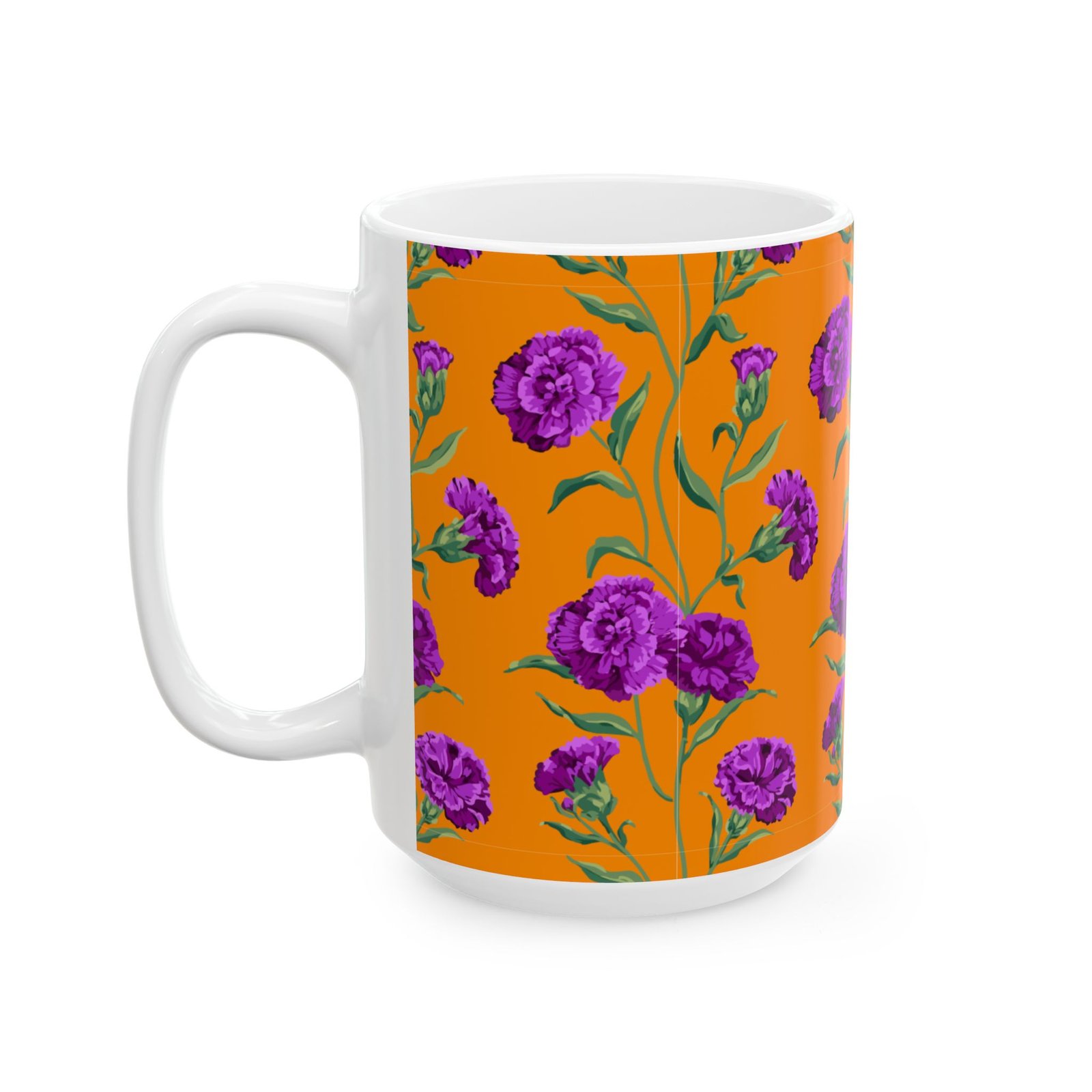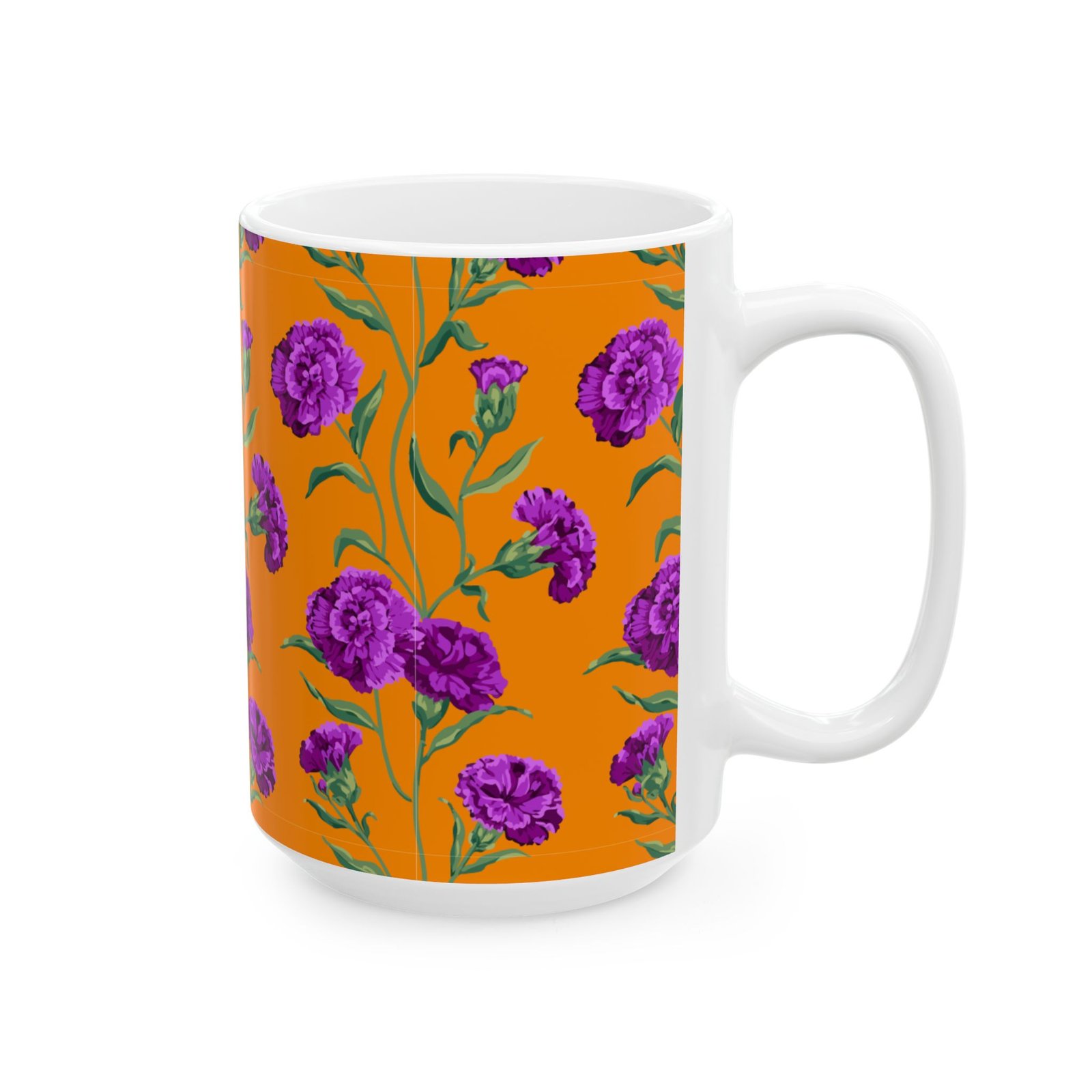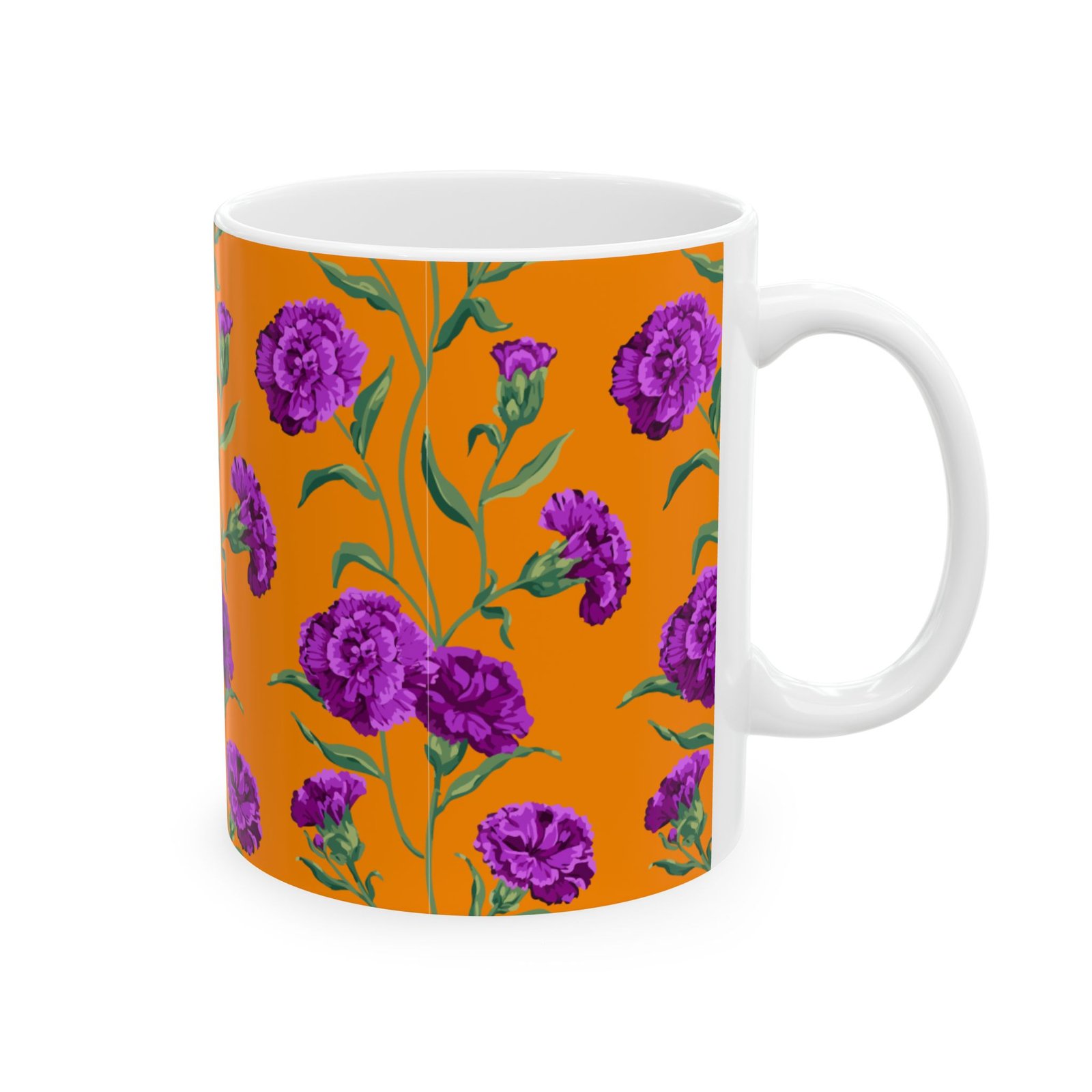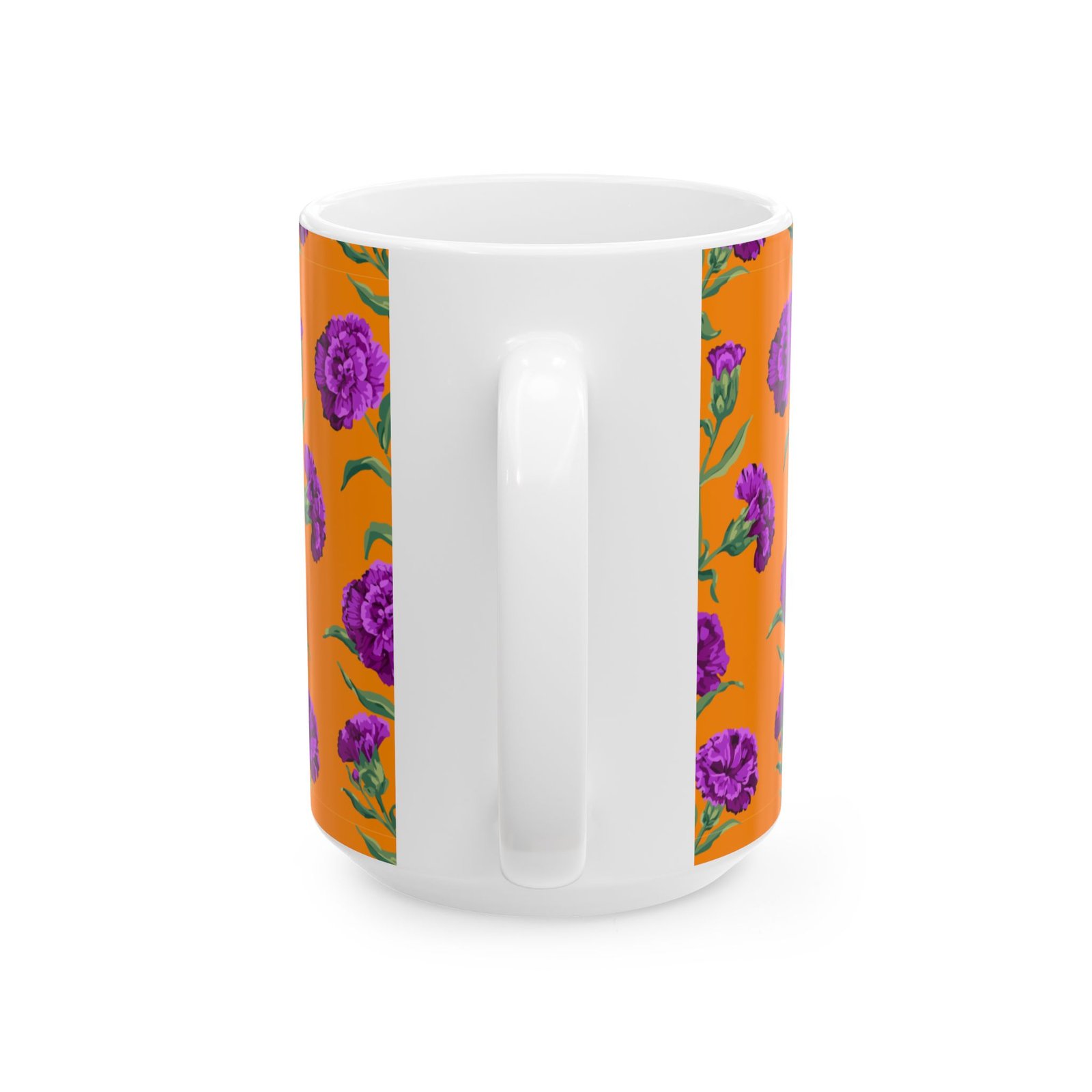 Bright, bold, and full of character — this ceramic mug brings a splash of joyful color to morning routines and slow-afternoon sips. Vivid purple carnations climb against a warm orange backdrop, turning a simple drink into a small, uplifting ritual. The glossy finish catches the light, letting the floral details pop whether it’s full of coffee, tea, or cocoa. Light in hand with a comfortable C-handle, it’s the kind of mug that sits on your desk and makes the day feel a bit more intentional. Use it while journaling, chatting with friends, or settling into a cozy window seat during a quiet weekend brunch.