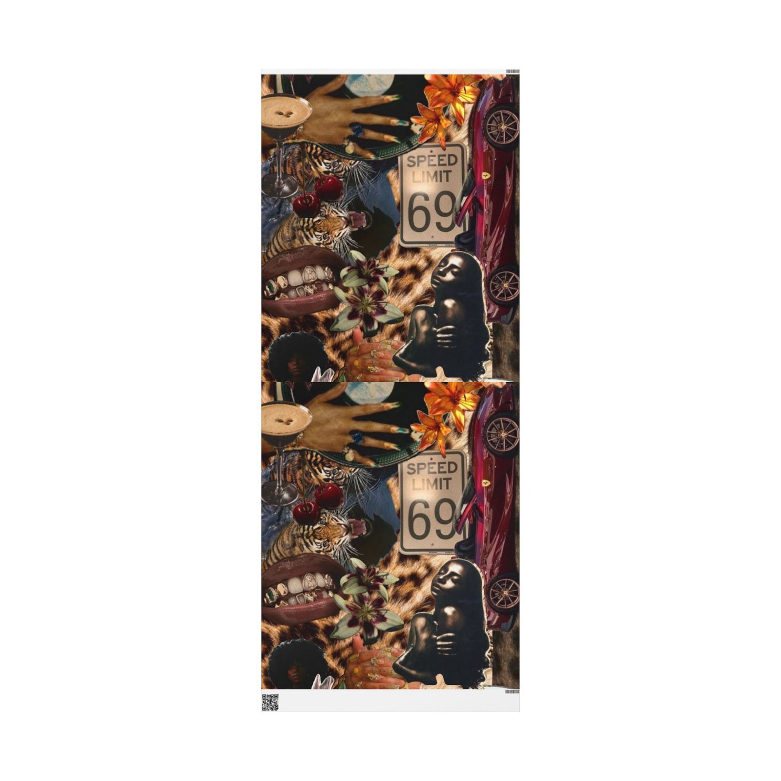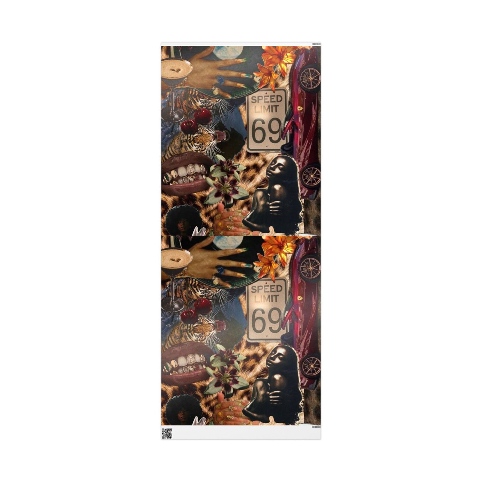 .: Please note: Wrapping paper from SPOKE includes white spaces at top and bottom edges with a bar and QR code
